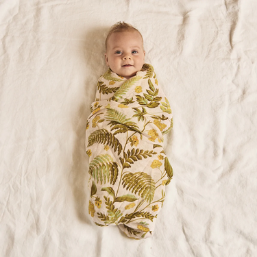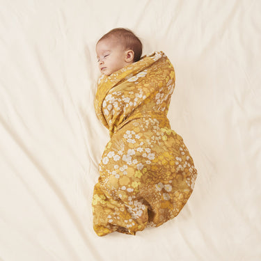 Made from 70% Bamboo and 30% organic cotton, this muslin swaddle gives you the super soft handle of bamboo with the cool breathable nature of cotton. The dreamy design is digitally printed allowing the fabric to maintain its super soft handle.