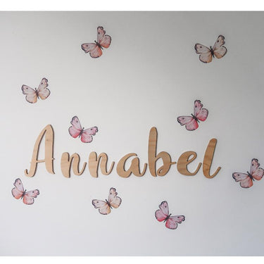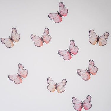 9 hand painted butterflies on each sheet at approximately 6cm high x 9cm wide in our removable, reusable wall decal fabric.